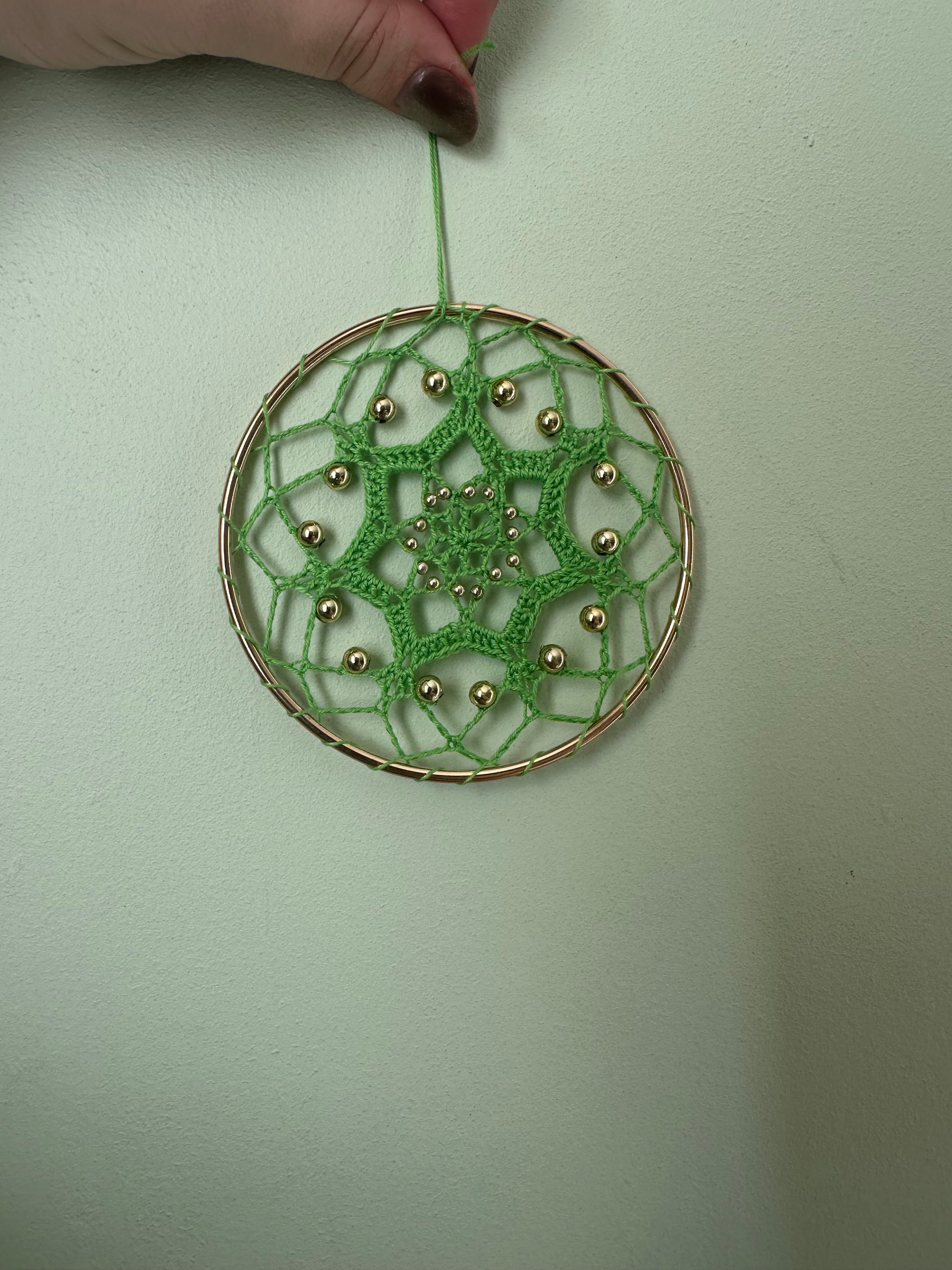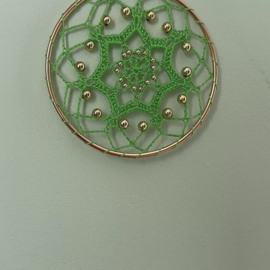Cette étoile verte, couleur de la chance, est composée de 7 pointe (chiffre de la protection), et de perles dorées (symbole de richesse).